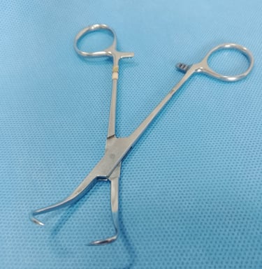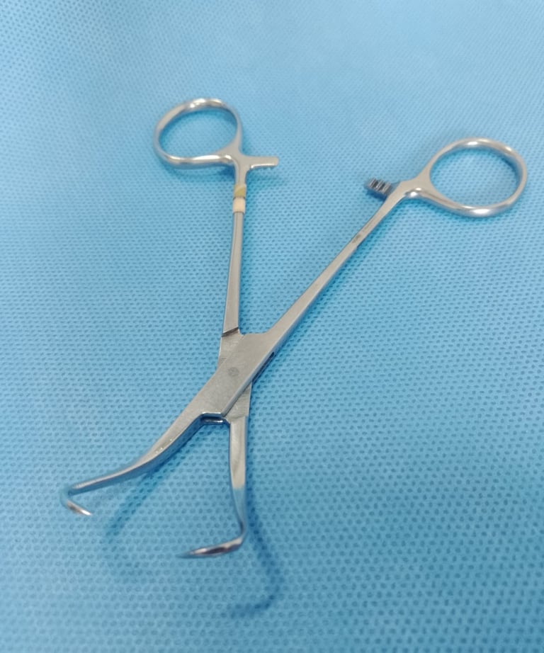 A pinça Backaus, também conhecida como pinça de campo, é usada em cirurgias para prender os campos cirúrgicos estéreis em volta da área operada. Sua função é manter a área de trabalho livre de contaminação e bem delimitada.